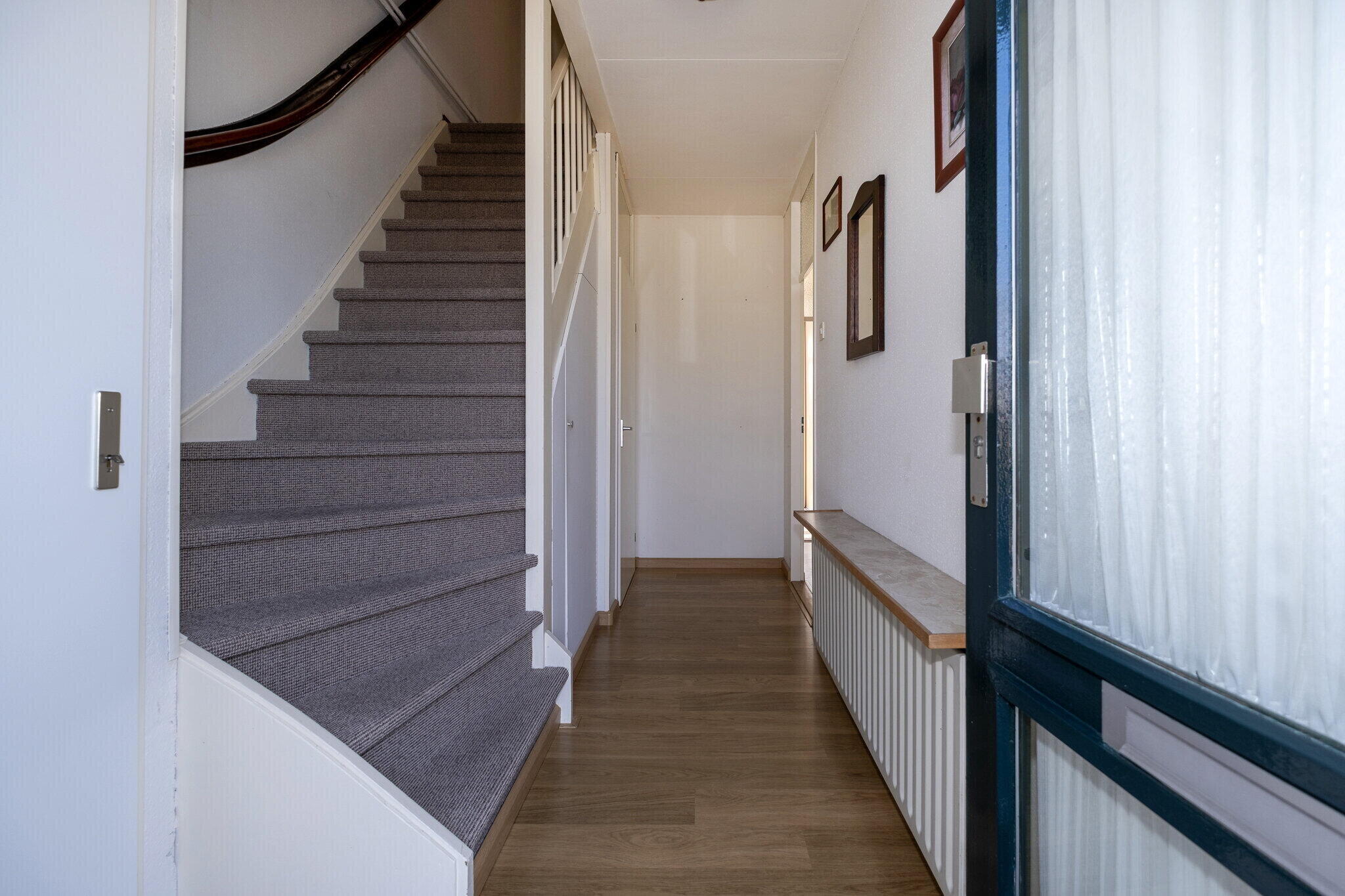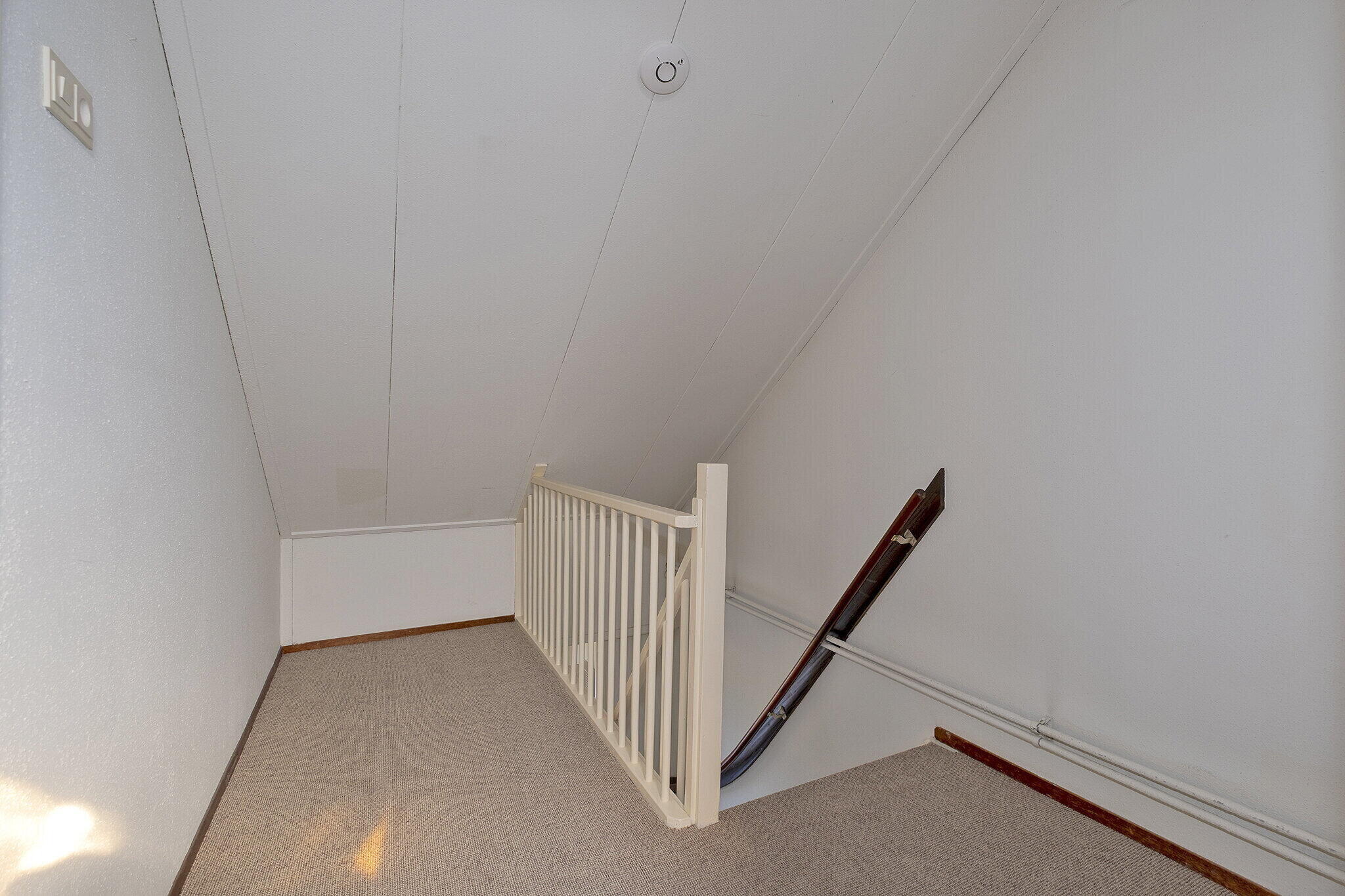 De overloop biedt toegang tot twee slaapkamers, waarvan één ruime en één kleinere kamer. Daarnaast is er op deze verdieping veel praktische bergruimte aanwezig.