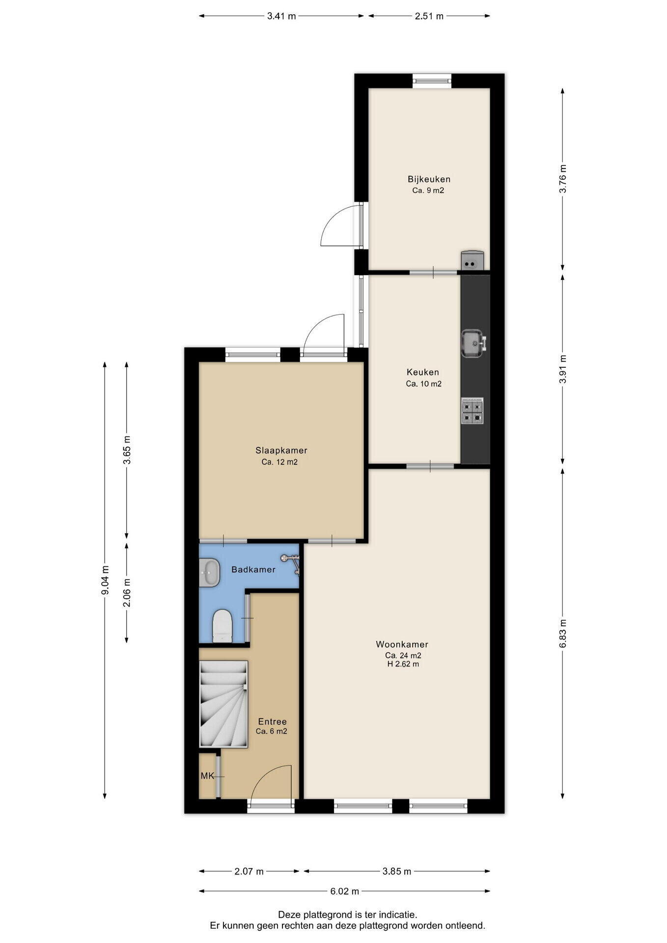 - 119 m² (12.5 meter diep en 9.5 meter breed)